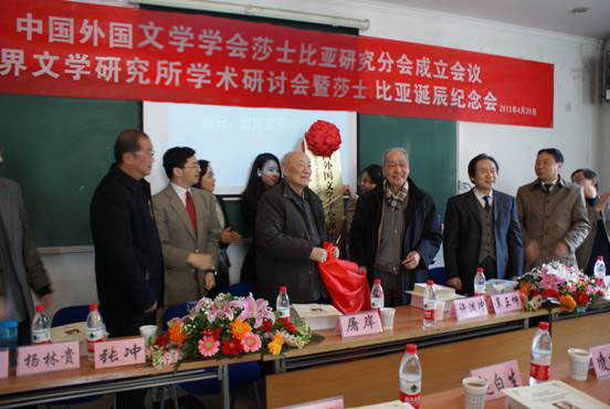2013年4月20日,中国外国文学学会莎士比亚研究分会(简称“中莎会”)成立会议在北京大学举行。此次会议由北京大学世界文学研究所组织承办。著名翻译家、学者许渊冲教授、屠岸先生出席了开幕式,来自北京、上海、重庆和湖北等全国各地的若干学者和北京大学世界文学研究所的研究生们参加了会议。